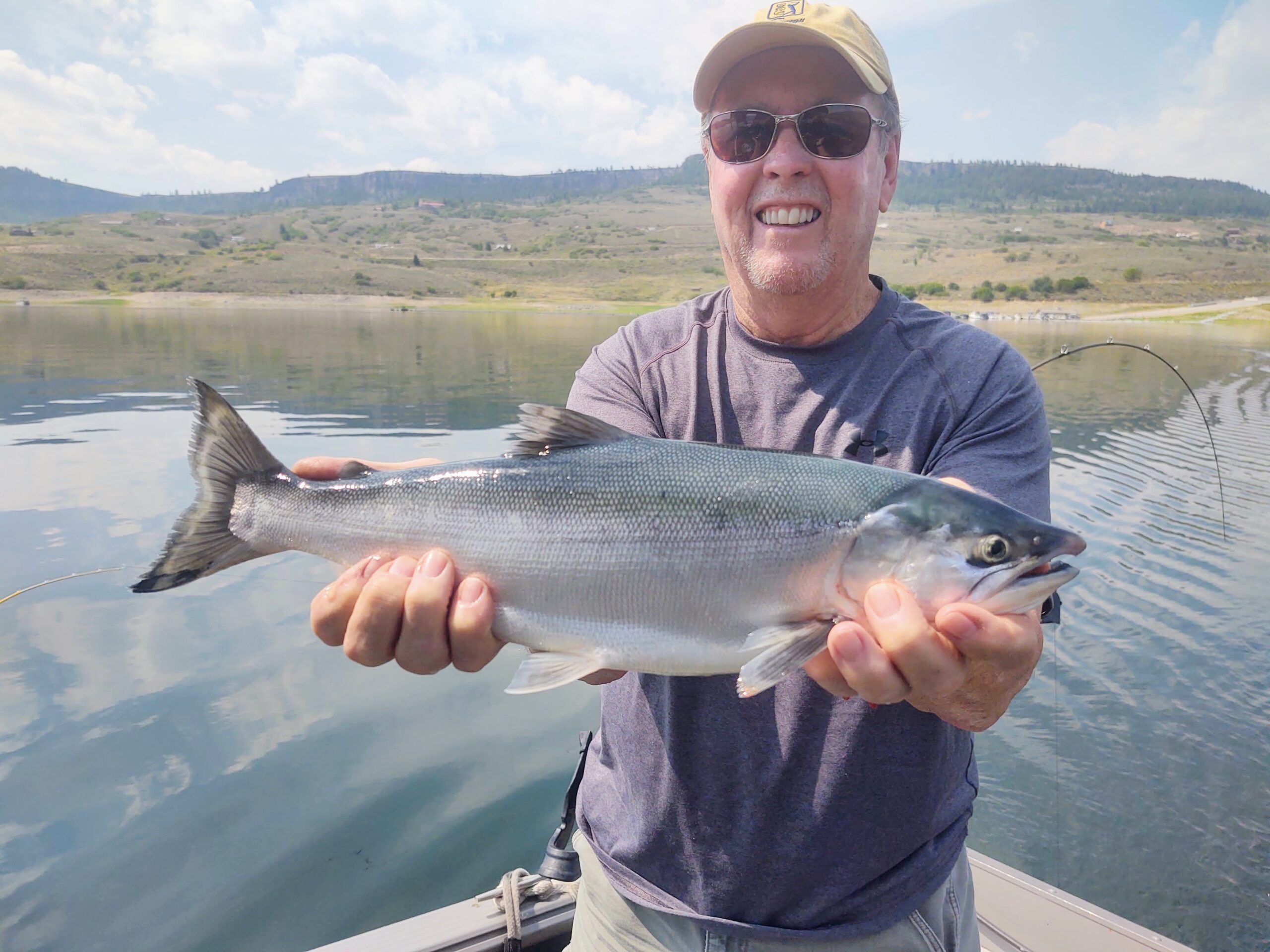 Blue Mesa Reservoir is one of the most productive fisheries in Colorado. This guided trip is the BEST for any and all anglers! May- Aug, and is action packed trolling. The reservoir is vast at 9,000 surface acres and the water is pristine. The No. 1 fishery management priority is Kokanee Salmon. Colorado Parks and Wildlife stocks more than 3 million fingerlings every year.