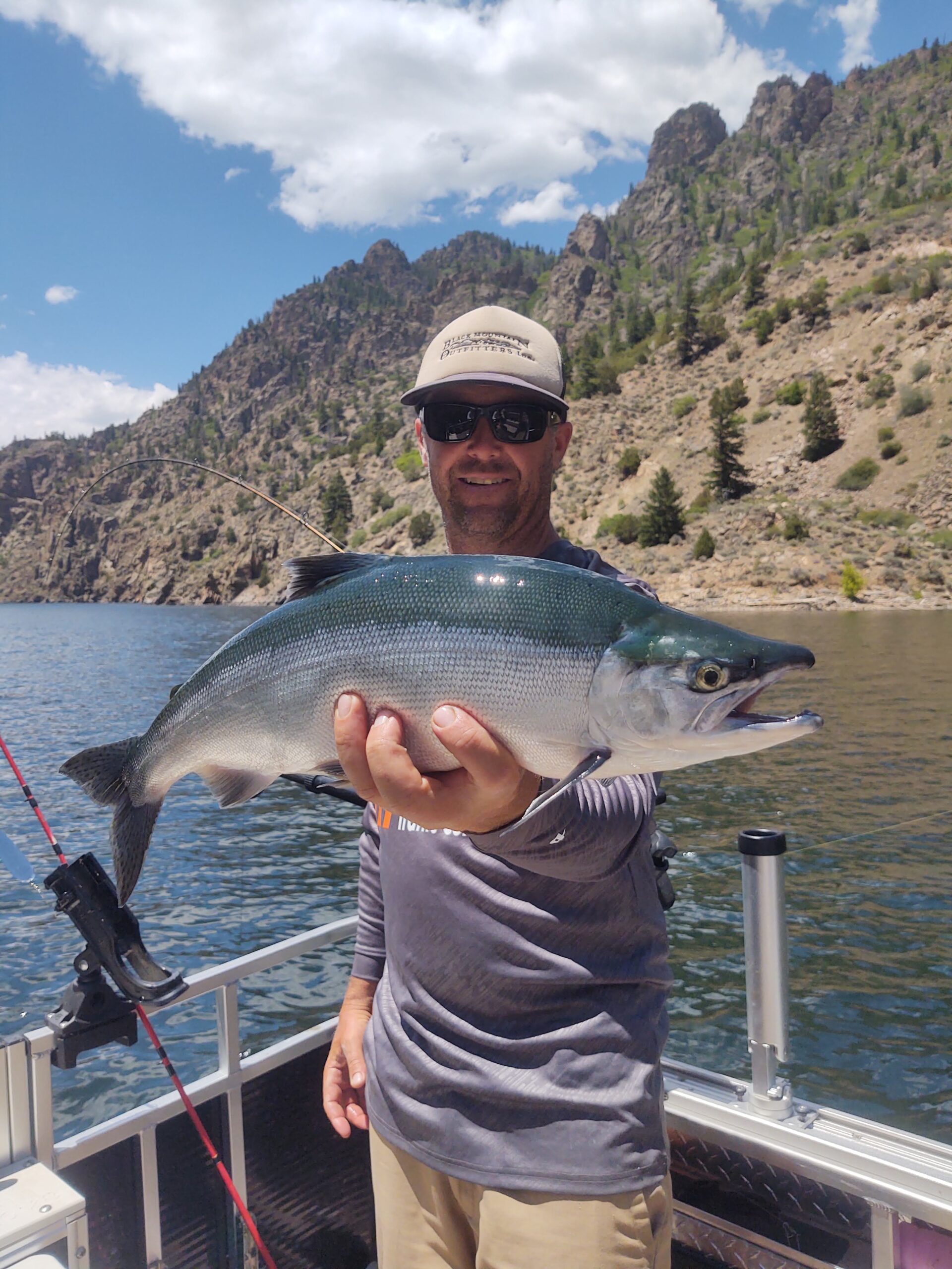 Targeting kokanee salmon while Trolling using lead core line and downriggers. Trout are often caught as well. 1-6 people. 4 or 6 hour trips. Fun for any age or skill level angler
